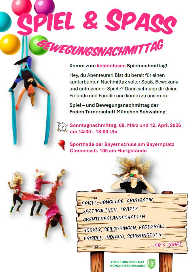 Wer Lust hat, kommt ohne Anmeldung zum Offenen Spielnachmittag in die Sporthalle der Bayernschule.
